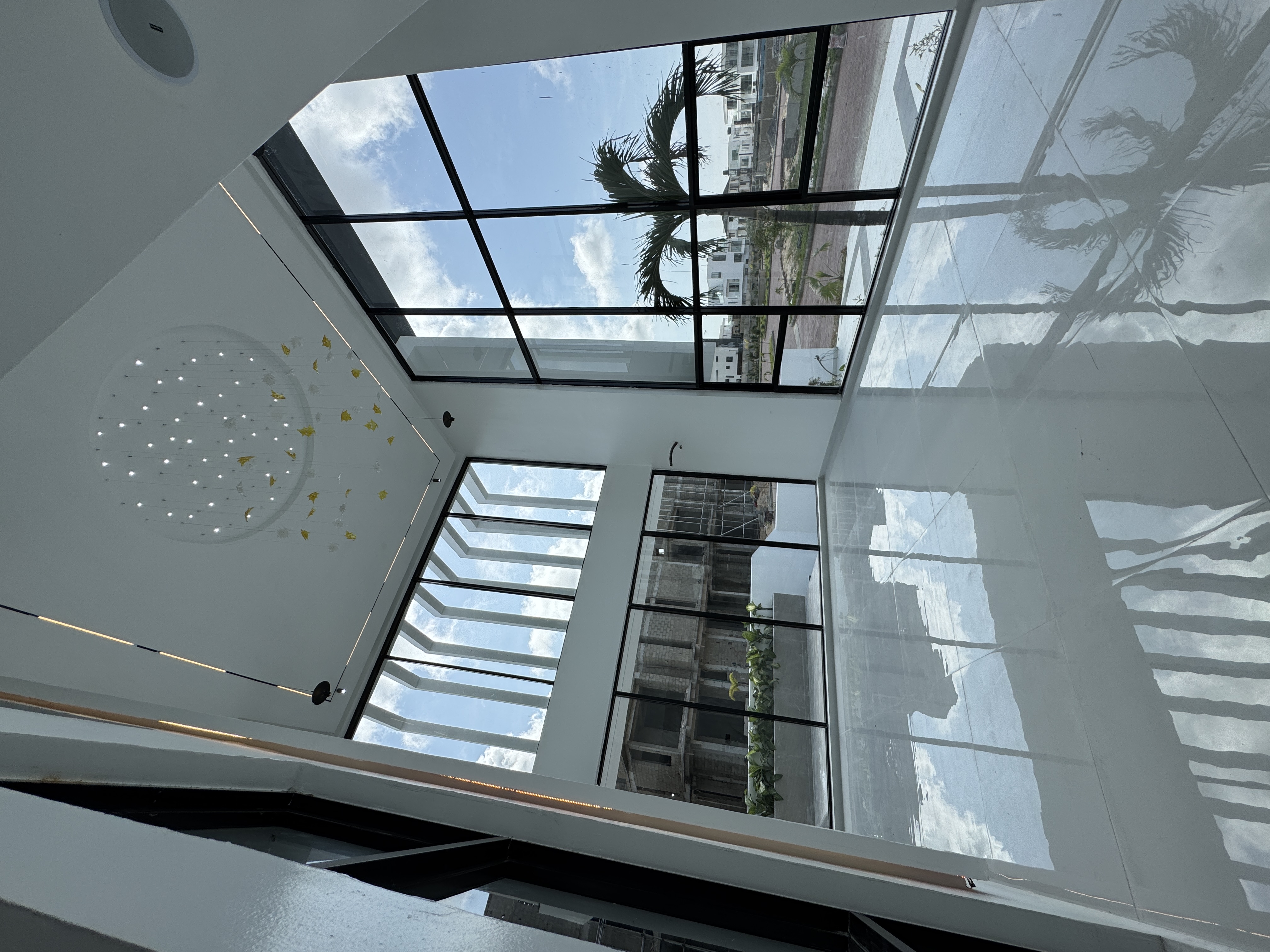 This home is packed with lots of modern features like home automations, glass framed elevator, a home cinema, a contemporary facade, swimming pool, a fully fitted kitchen, premium bath wares,  home office, Private Study, kitchenette, a rooftop open terrace with views of the Lagos lagoon, study, outdoor wine cellar, and lots more.