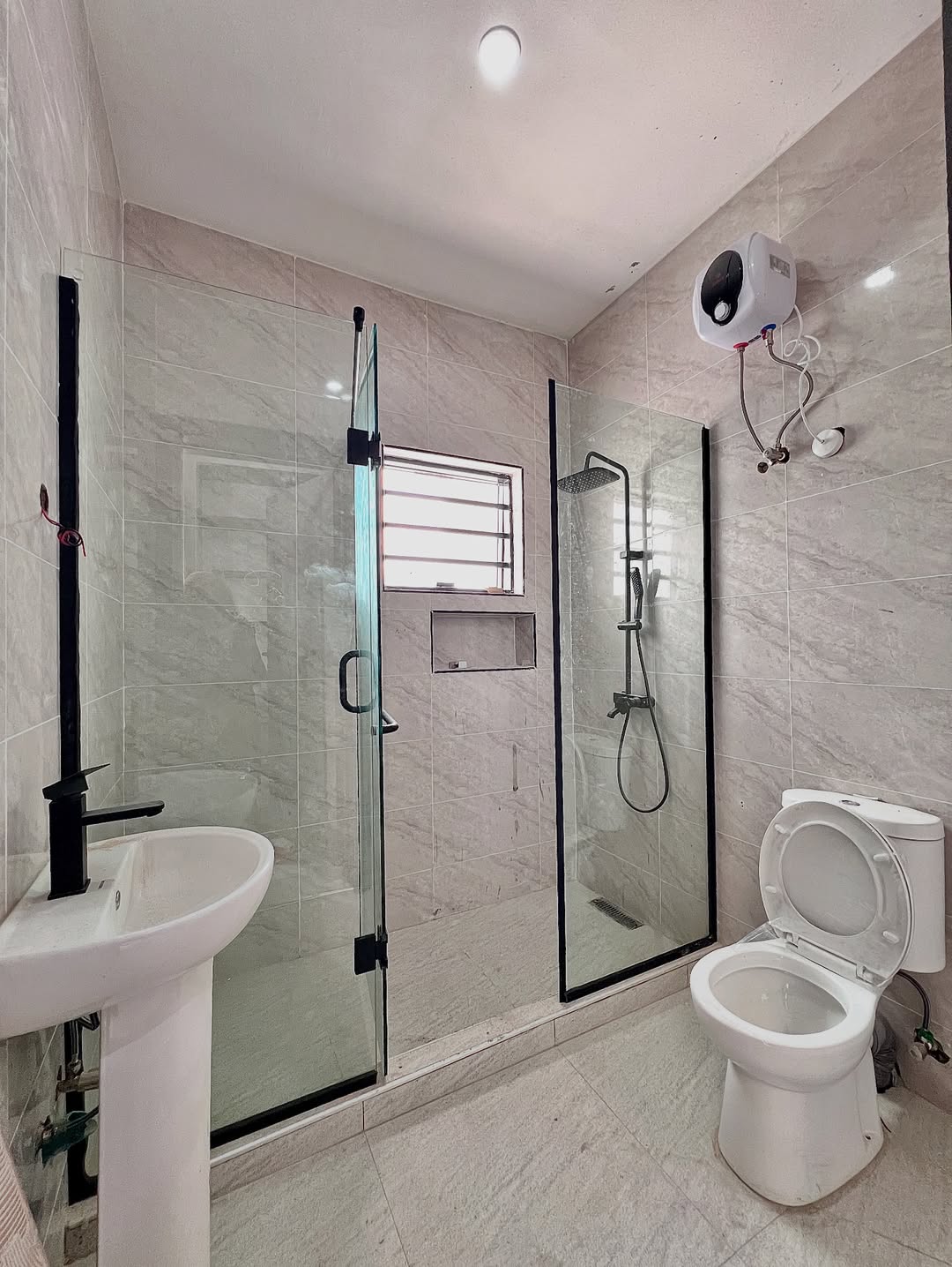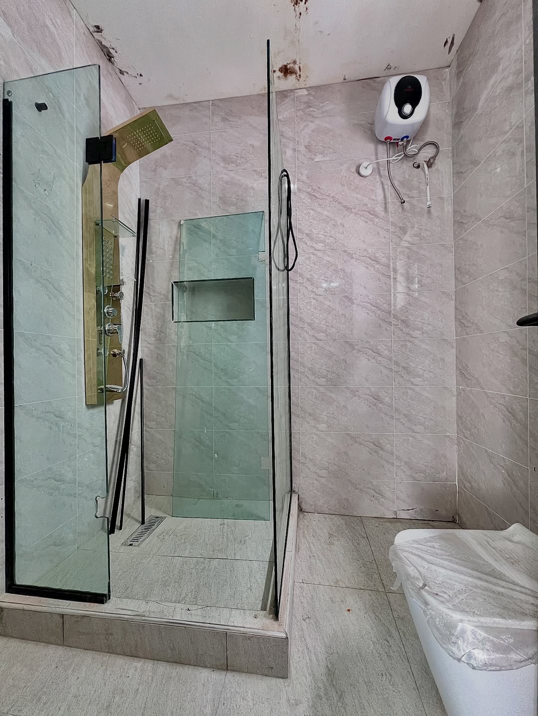 Concrete floor  BQ  Walk-In Closet  Water Heater  Walk-In Showers Bath Tub Etc