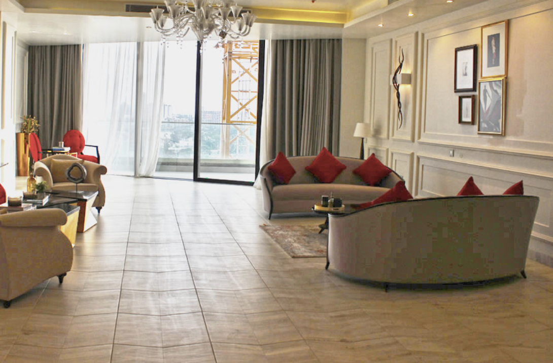 The apartment opens up to a cosy lobby which leads to the home office and ultra Luxury living area🛋ï¸. The Masters bathroom is in a class of its own, it opens up to the massive state of the art walk in closet which also leads to the luxury bathroom with a walk in shower 🚿 and a unique bathtub🛀 overlooking the city. The European Modular Kitchen is fully fitted with high-end appliances, plenty of cabinetry and a granite top center Island table, it leads to the 3 maids room and the luxury dinning area.