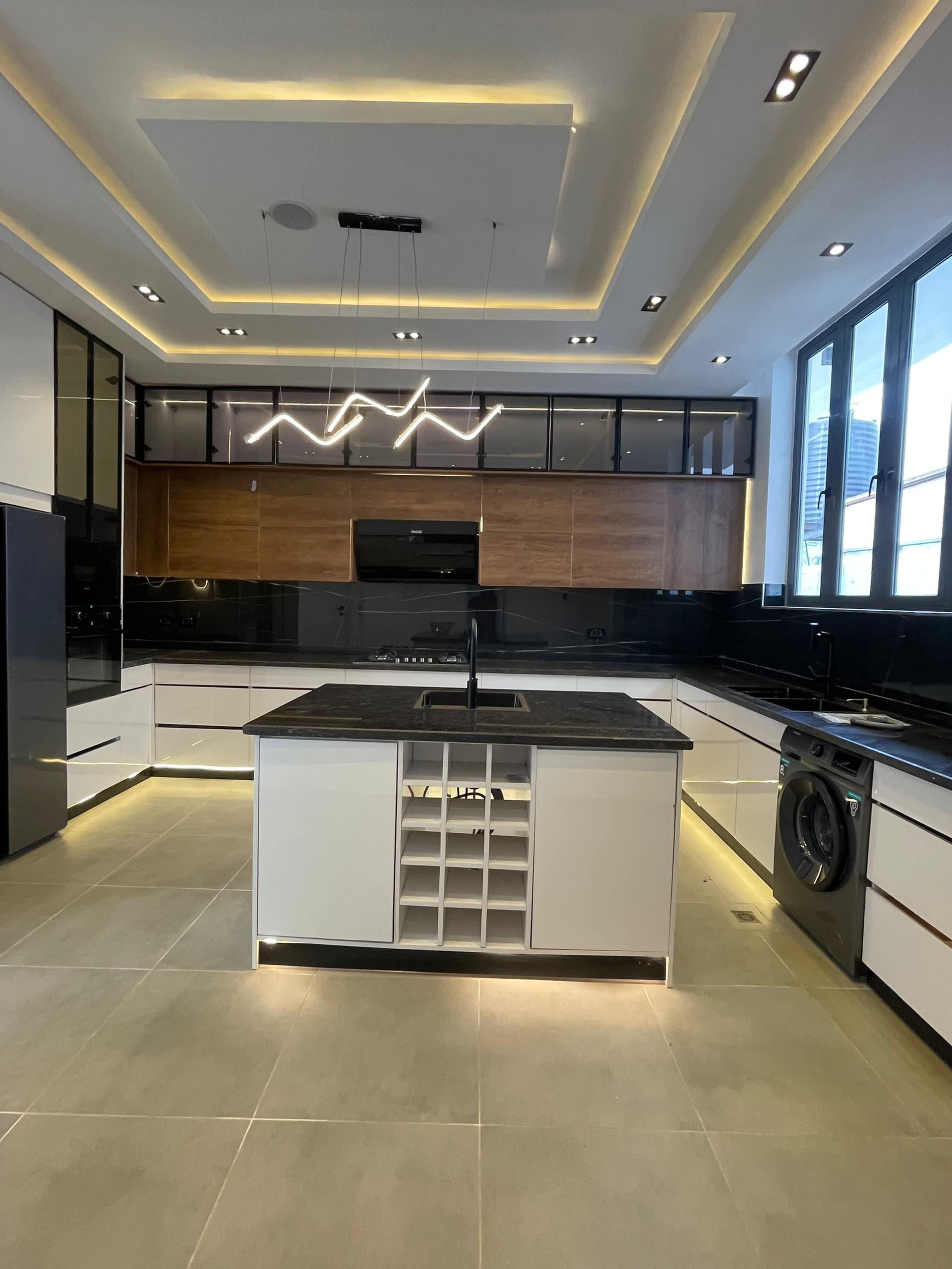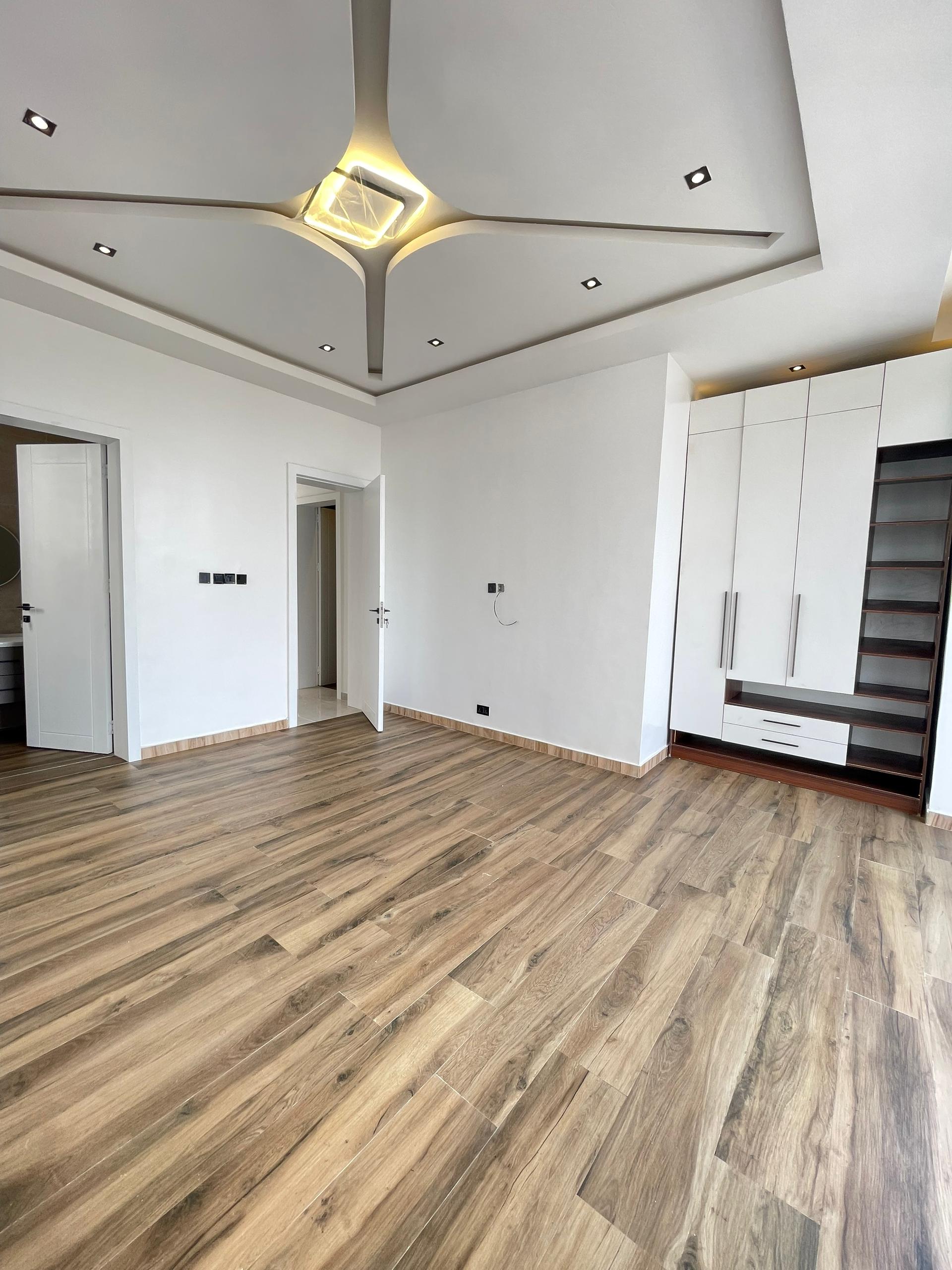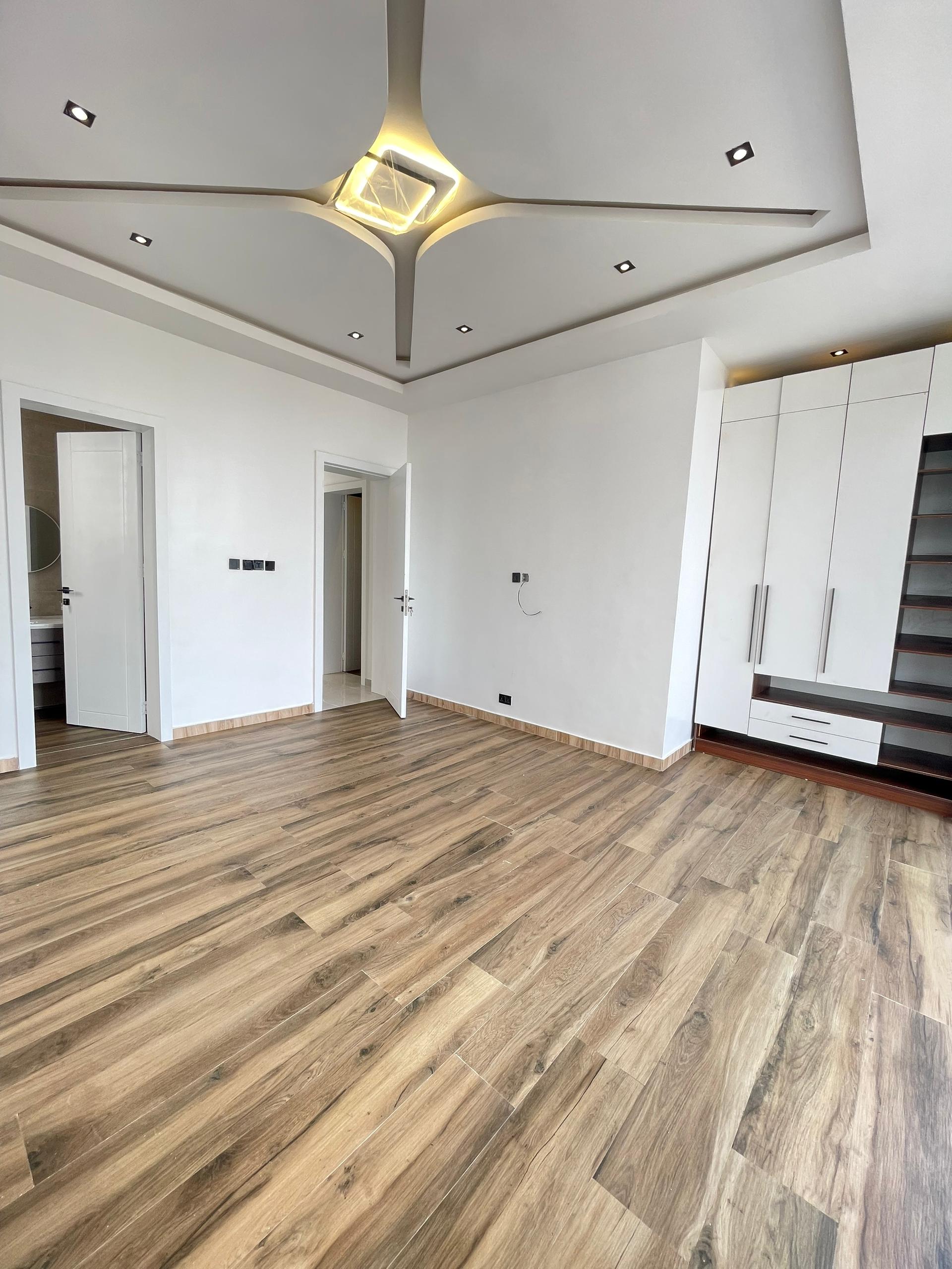 From the moment you enter, the spacious foyer sets the tone for the grandeur that unfolds. All five bedrooms are ensuite, featuring high-quality finishes, POP ceilings, and recessed LED lights that enhance the interior elegance. The fully fitted kitchen comes with state-of-the-art appliances, catering to both casual and gourmet cooking needs, while the dining area, highlighted by elegant chandeliers, provides a beautiful setting for family meals.