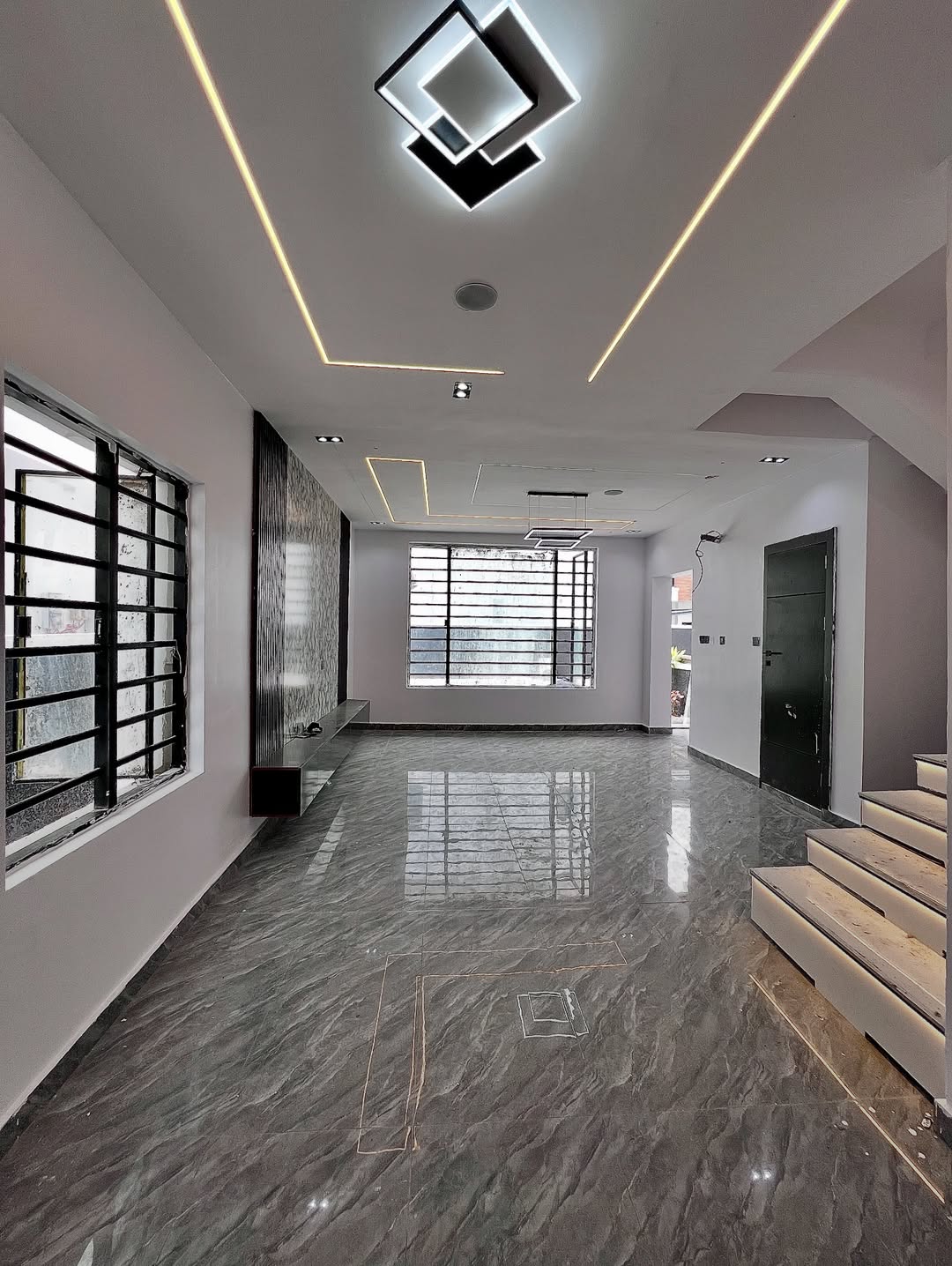 - Brand New  All Rooms Ensuite  Pop Ceiling Fitted Kitchen  Family Lounge  Bluetooth Speakers   Aesthetic Light Fittings  Modern Structure  Chandeliers  Dining Area  Spotlights  Balcony  Interlocked Streets